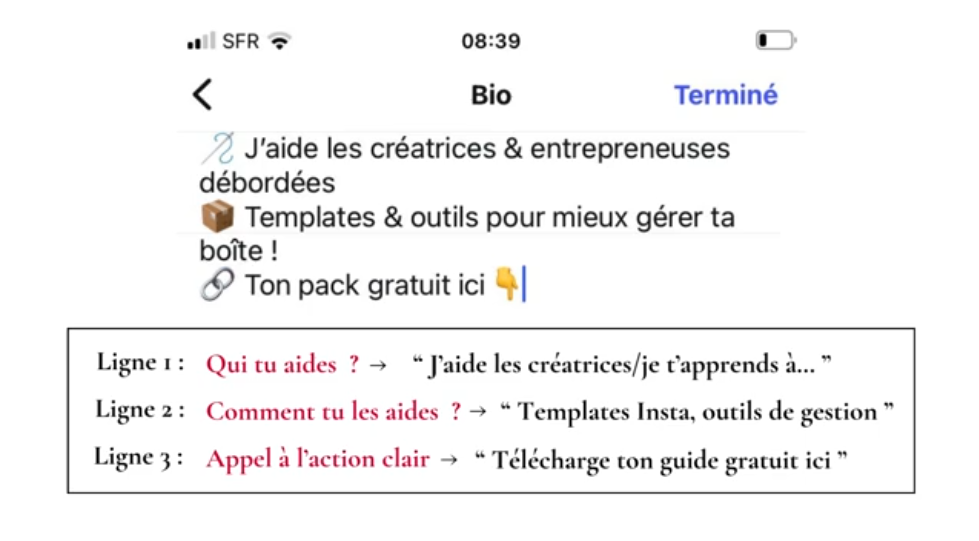 Voici une structure simple à suivre pour vous aider à rédiger votre bio Instagram :