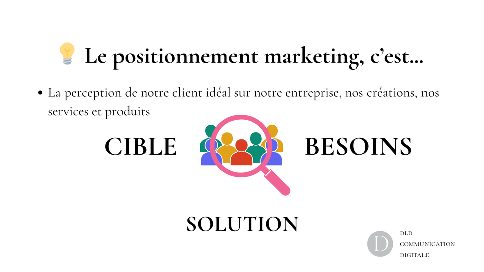 Pour faire simple, le positionnement, c’est la manière dont vous voulez apparaître aux yeux de vos clients idéaux. Autrement dit, comment vous voulez être perçu à leurs yeux, quand ils pensent à vous, vos créations, produits ou services.