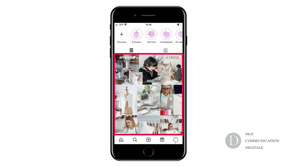 La grille Instagram de profil Instagram est la mosaïque d’images verticales qui apparaît lorsque un utilisateur se rend sur notre compte Instagram.