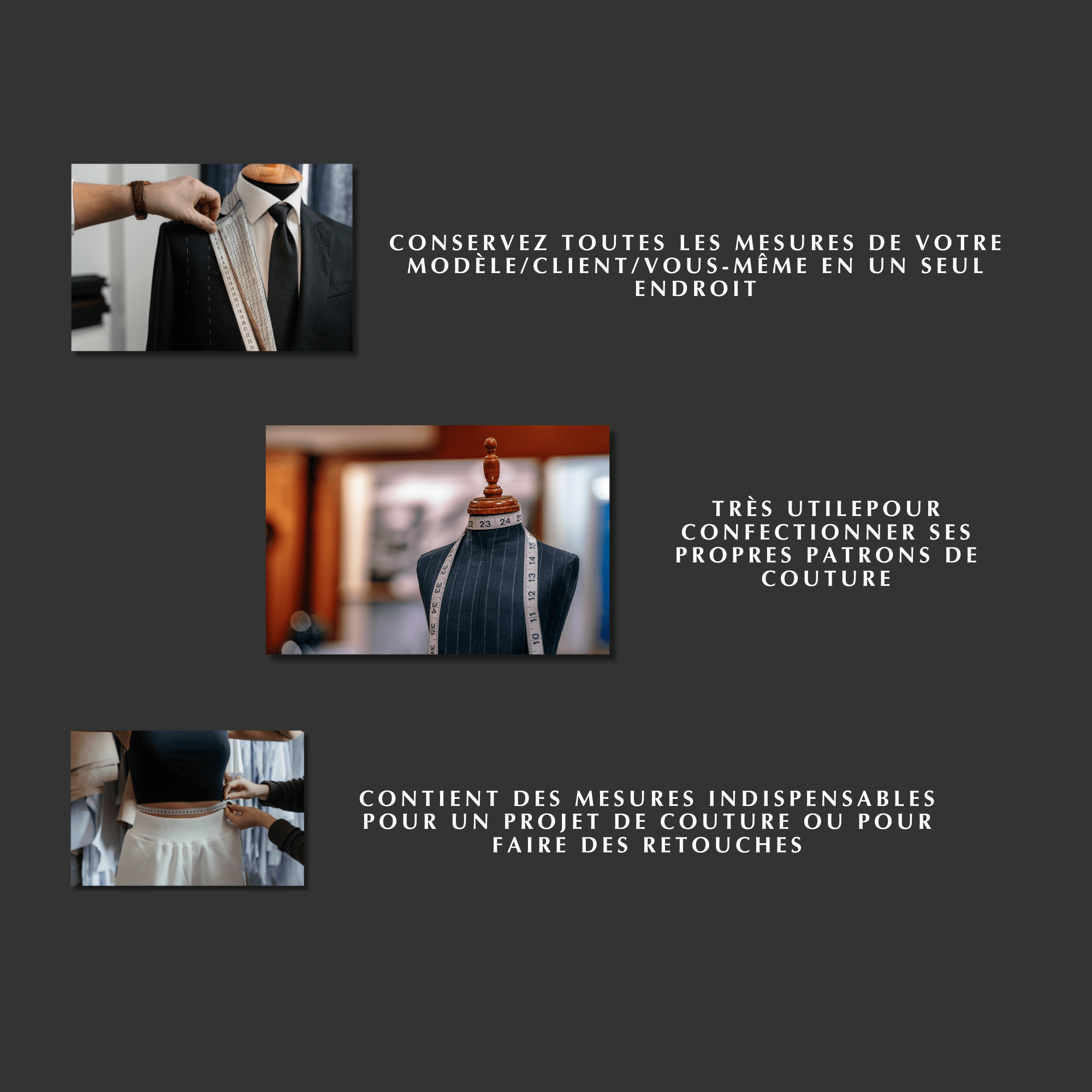 La fiche de mesure de couture contient toutes les mensurations de base pour la confection d’un patron ou pour la réalisation d’un projet de couture.