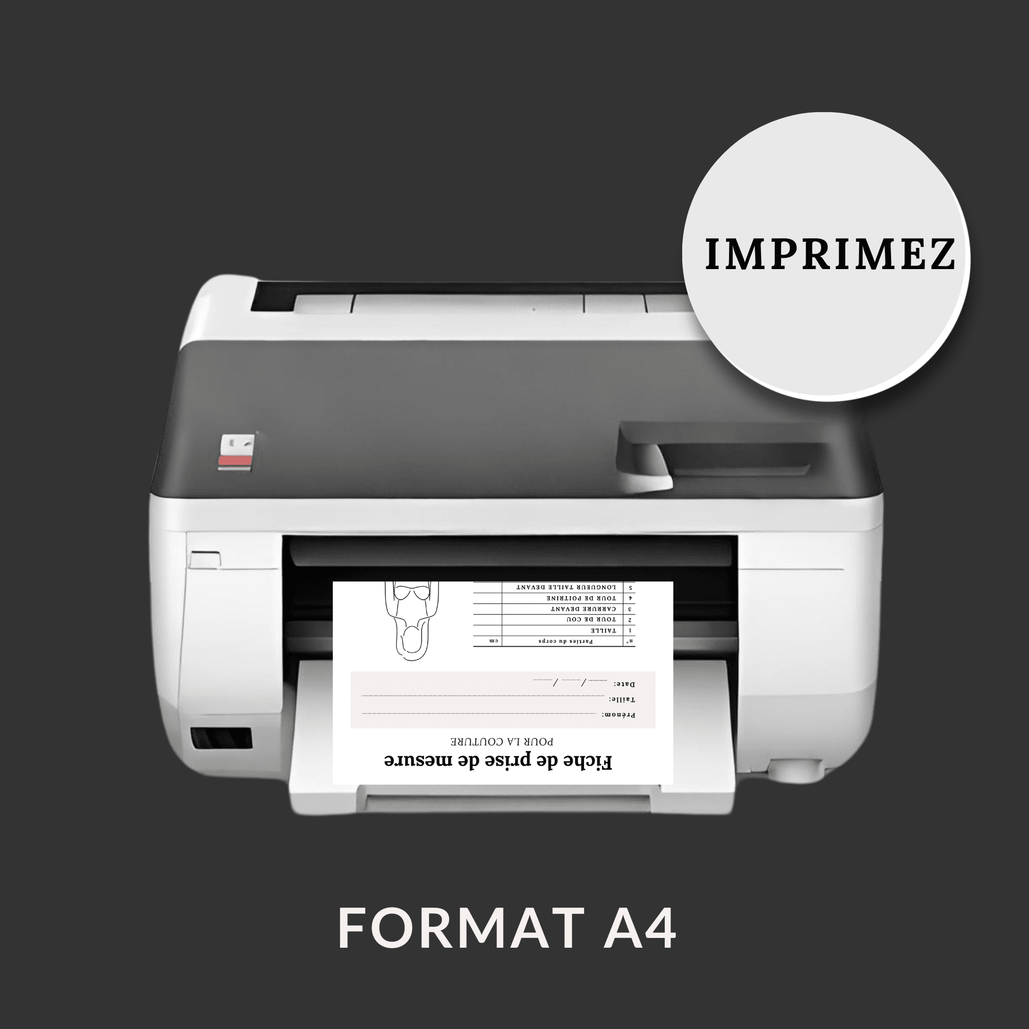La fiche de prise de mensurations est imprimable à l’infini, ce qui vous permet facilement, de mettre à jour vos mensurations et de renseigner les nouvelles mesures en cas de prise de poids entre deux essayages.