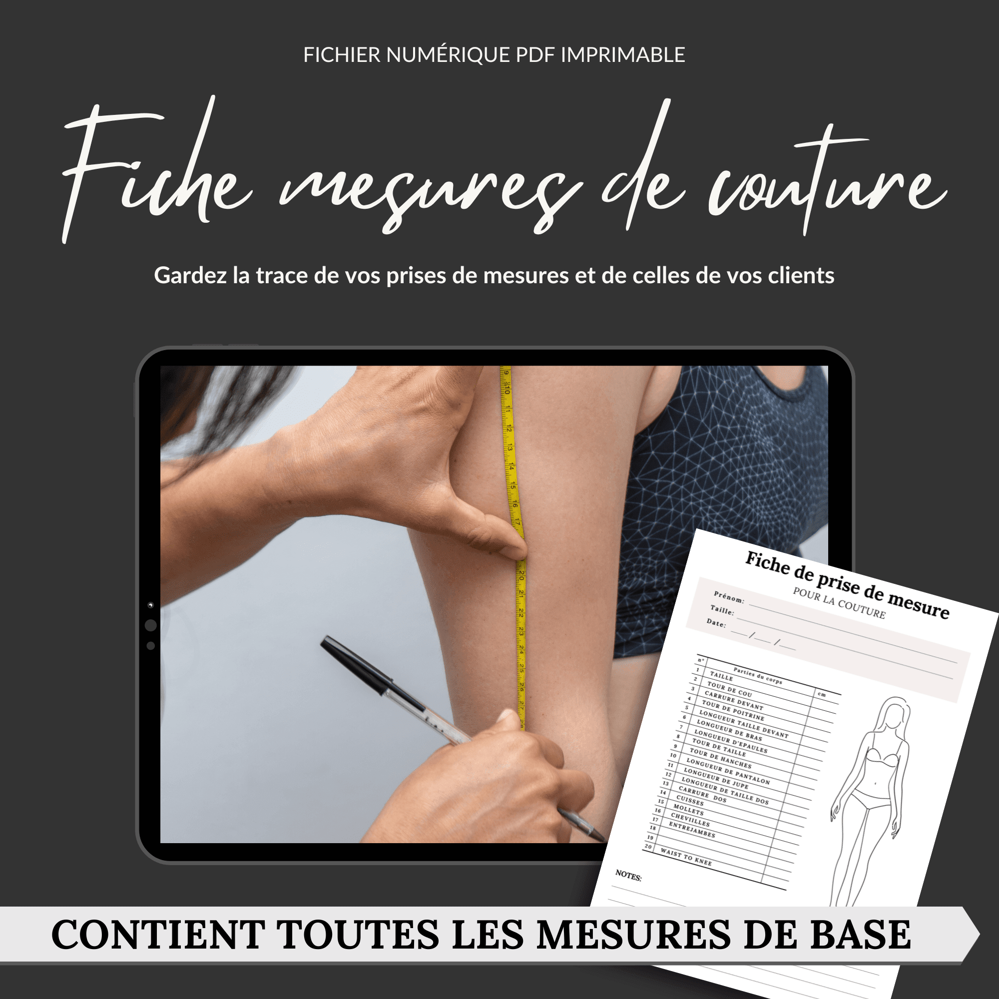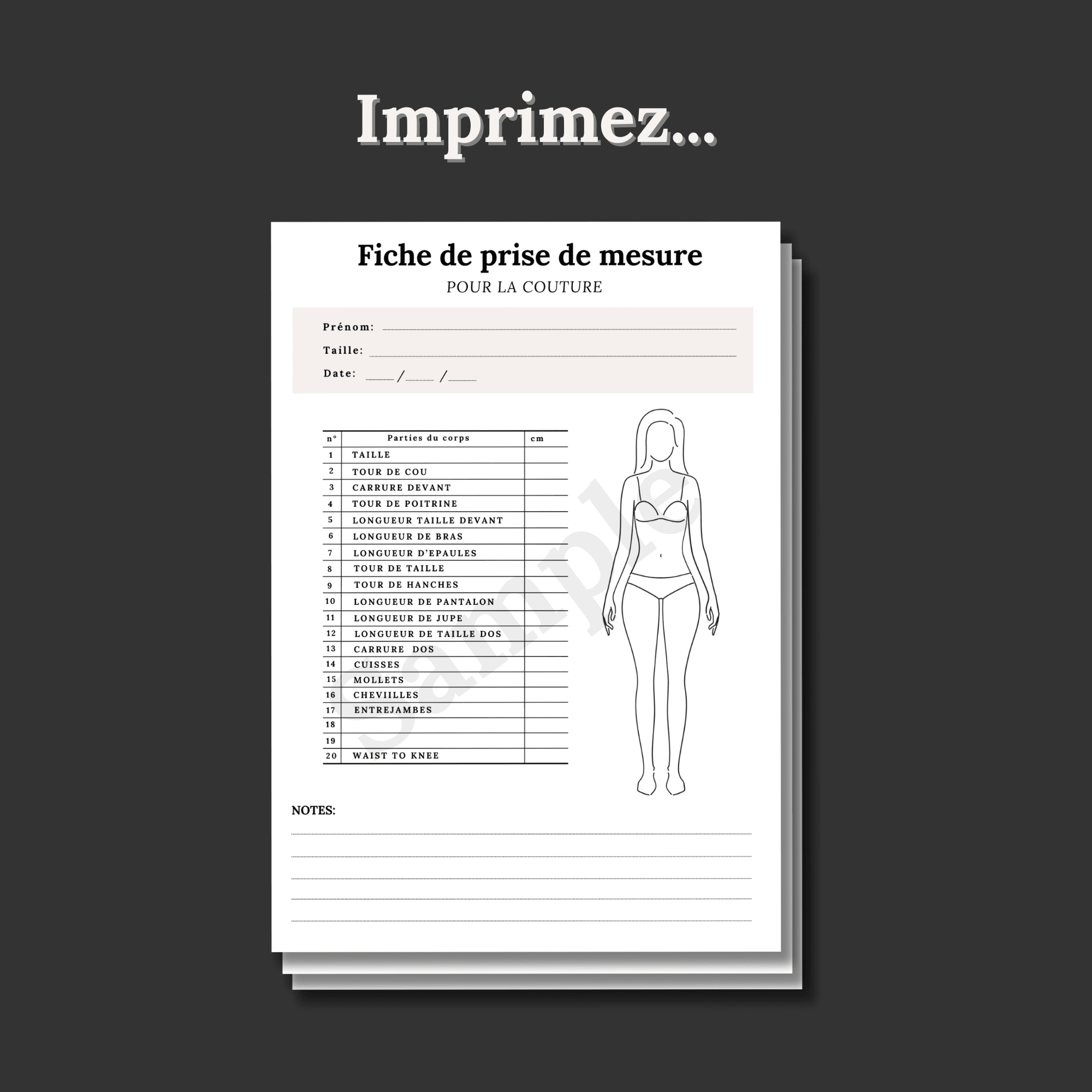 - 1 fiche de mesure de couture vierge à remplir, au format PDF imprimable