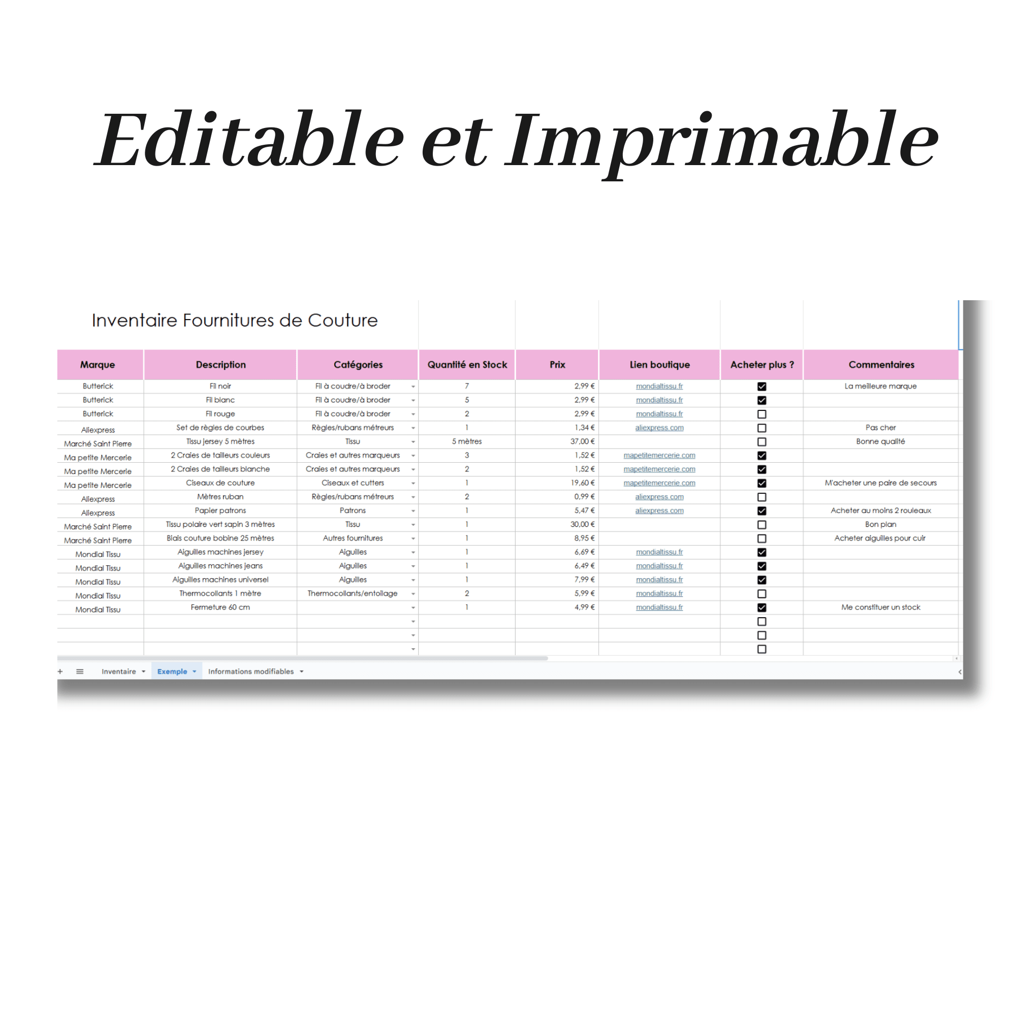 Produits associés au tableau d’Inventaire de couture susceptibles de vous intéresser :