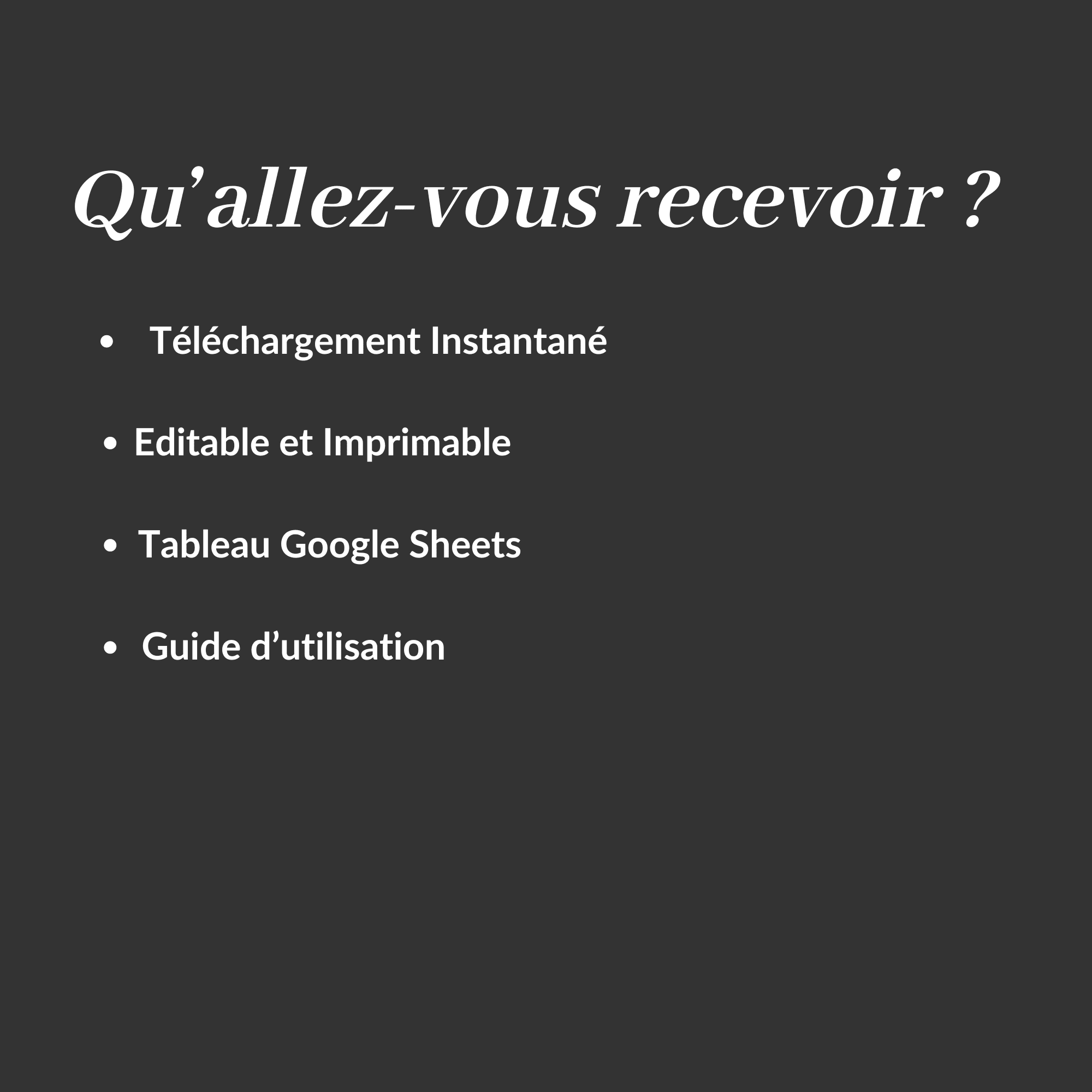 Il vous suffit simplement de remplir les cases. Tout est expliqué dans le document pdf dans lequel se trouve le lien vous permettant d’accéder au tableau Google Sheets.